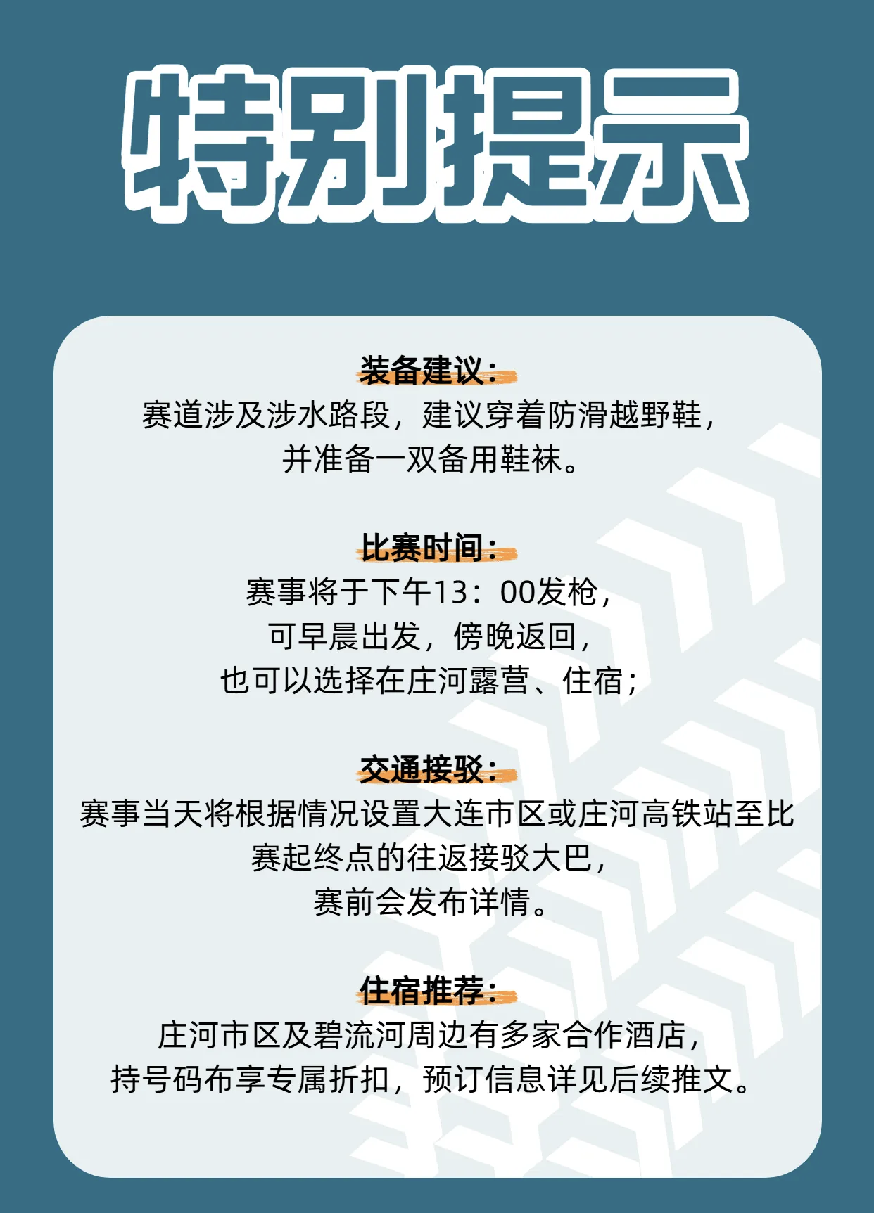 1、比赛采用芯片计时,芯片置于号码布背面,号码布与参赛物品同时领取。