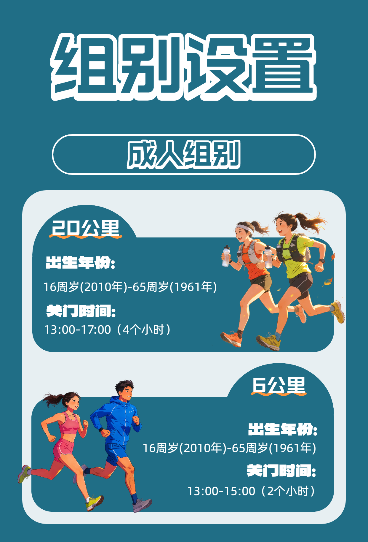 2、20公里项目报名限16周岁-65周岁;