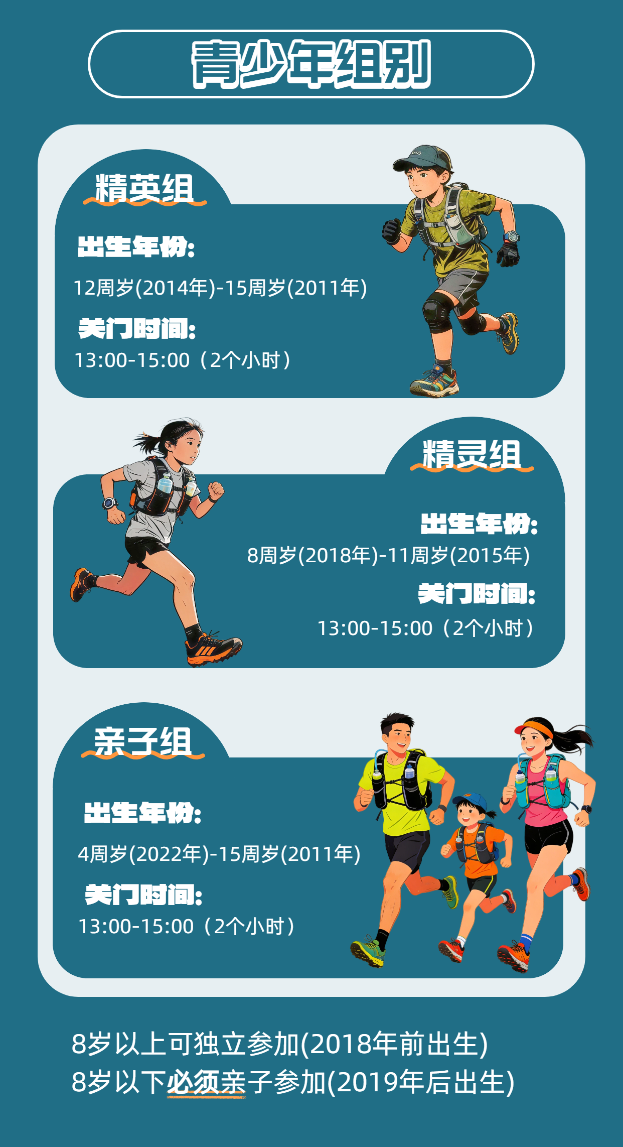 ·亲子组:4周岁(2022年)起,需在成年人陪同下完赛;