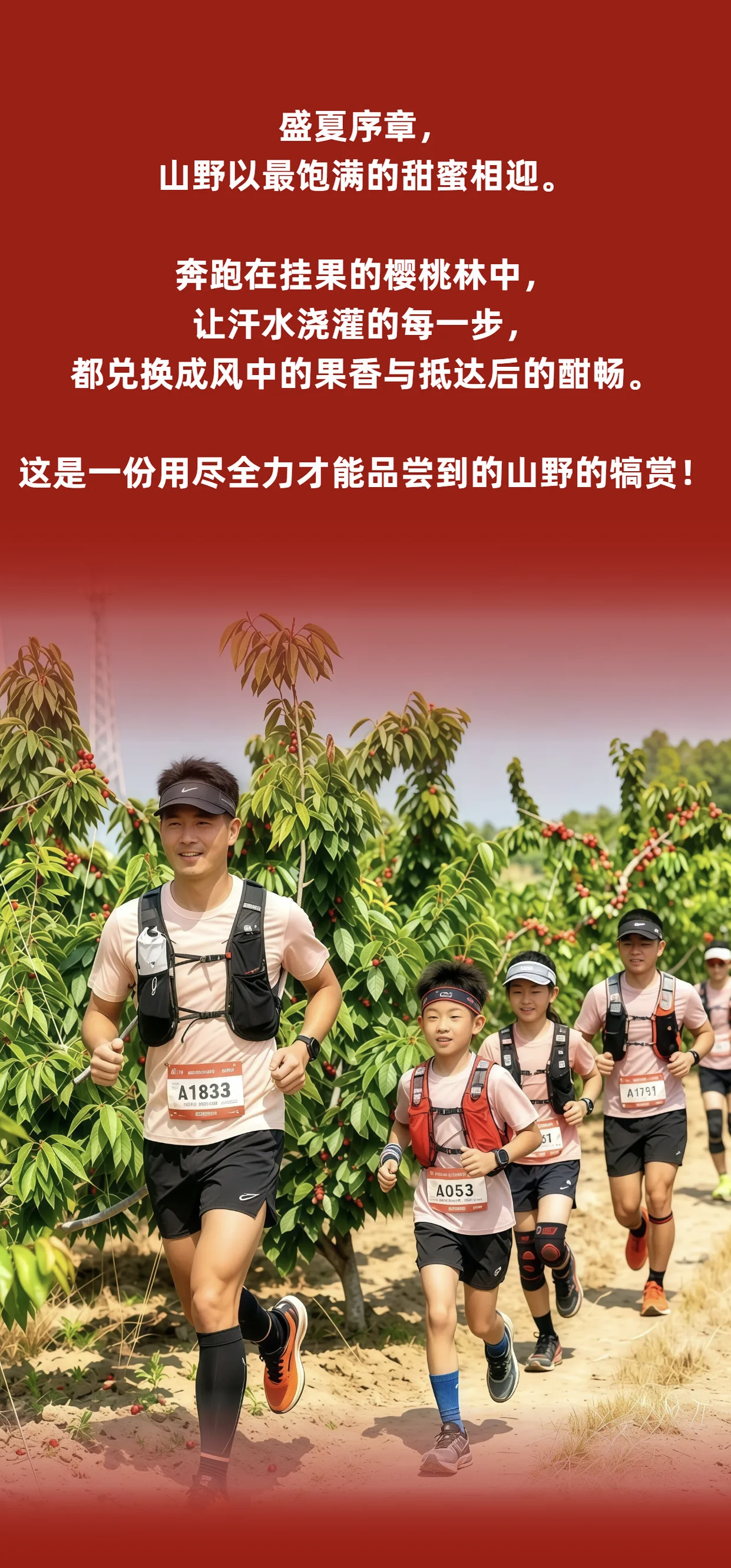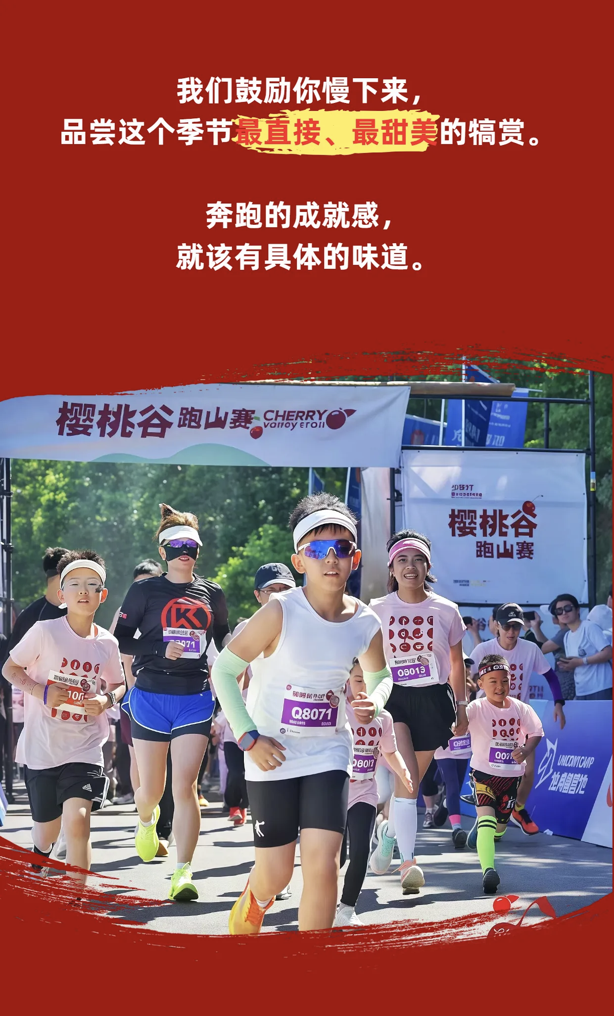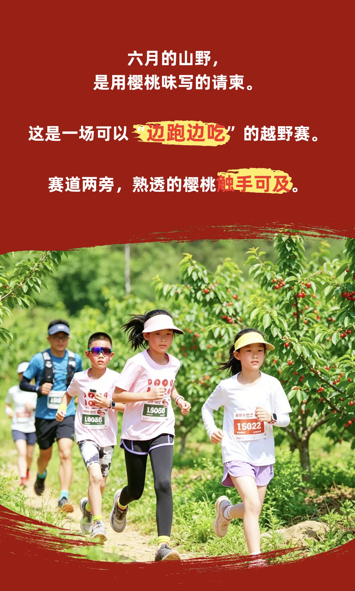 温馨提示:选手在比赛过程中将经过数个樱桃农场,所有补给站均提供樱桃补给,所以,经过的樱桃农场上谢绝直接摘食樱桃,请于补给站尽情品尝。